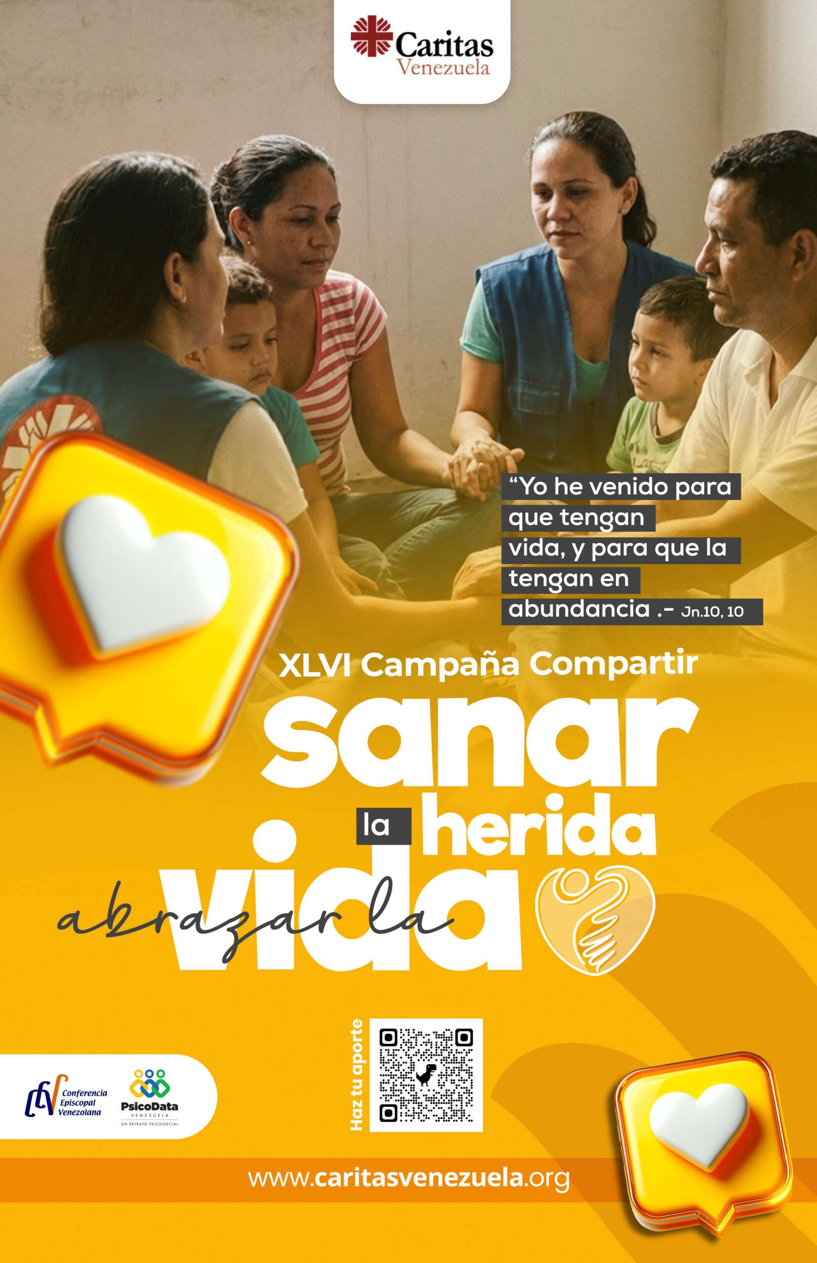 Cáritas de Venezuela invita a las comunidades, colegios, instituciones y familias a descargar la los recursos de acompañamiento de la campaña compartir a través de la página web oficial y redes sociales. Este material ofrece dinámicas para el discernimiento personal y herramientas para fortalecer la resiliencia en tiempos de dificultad.